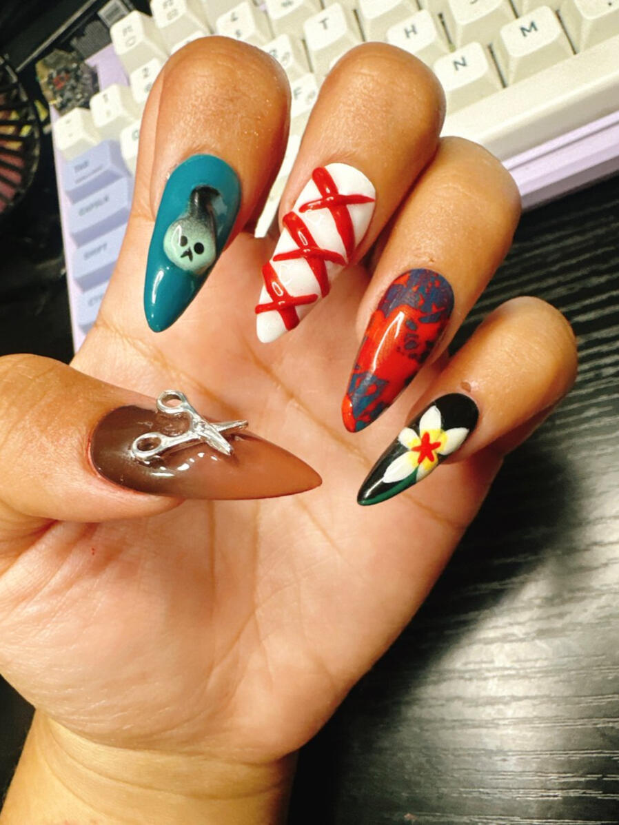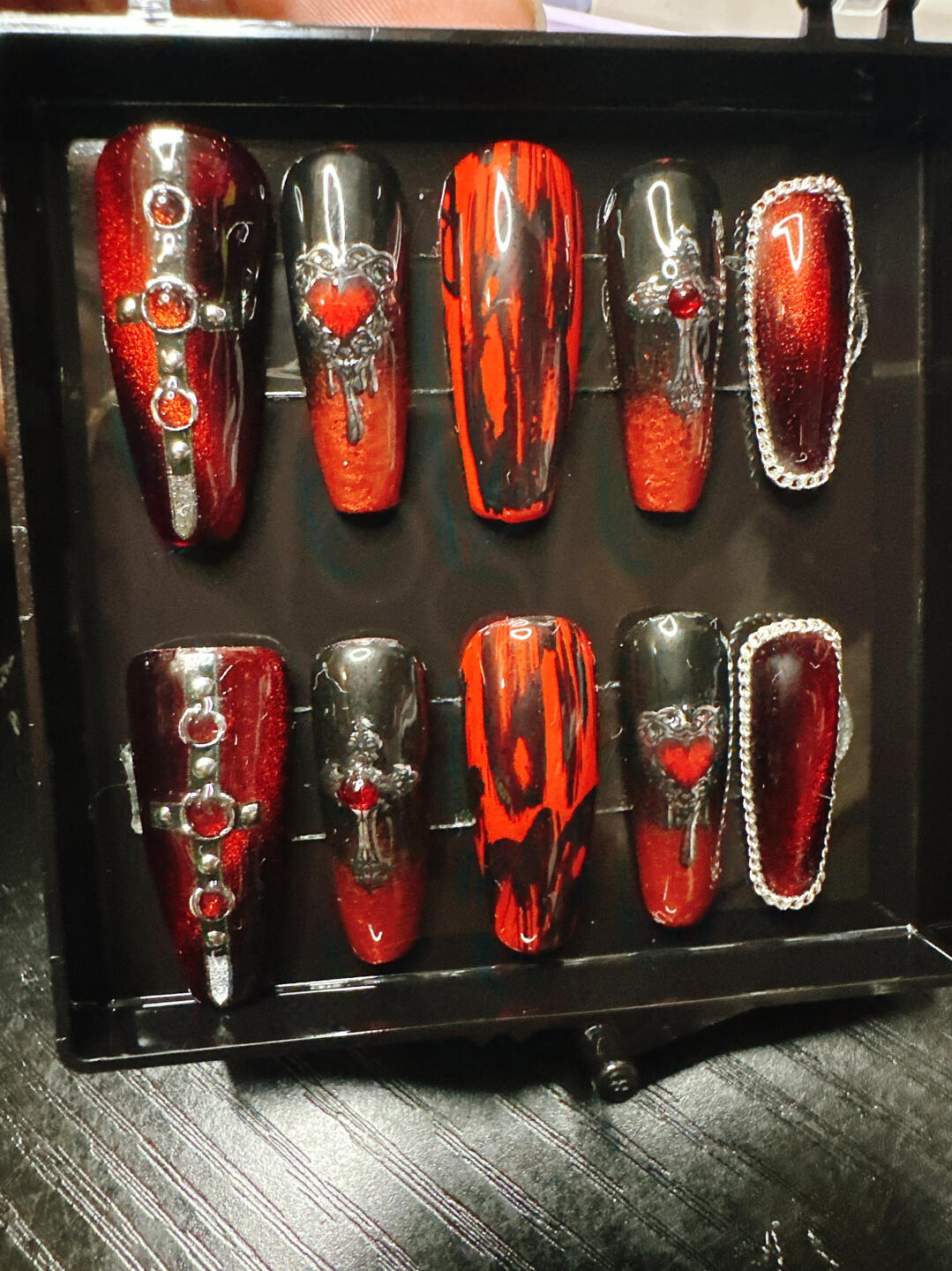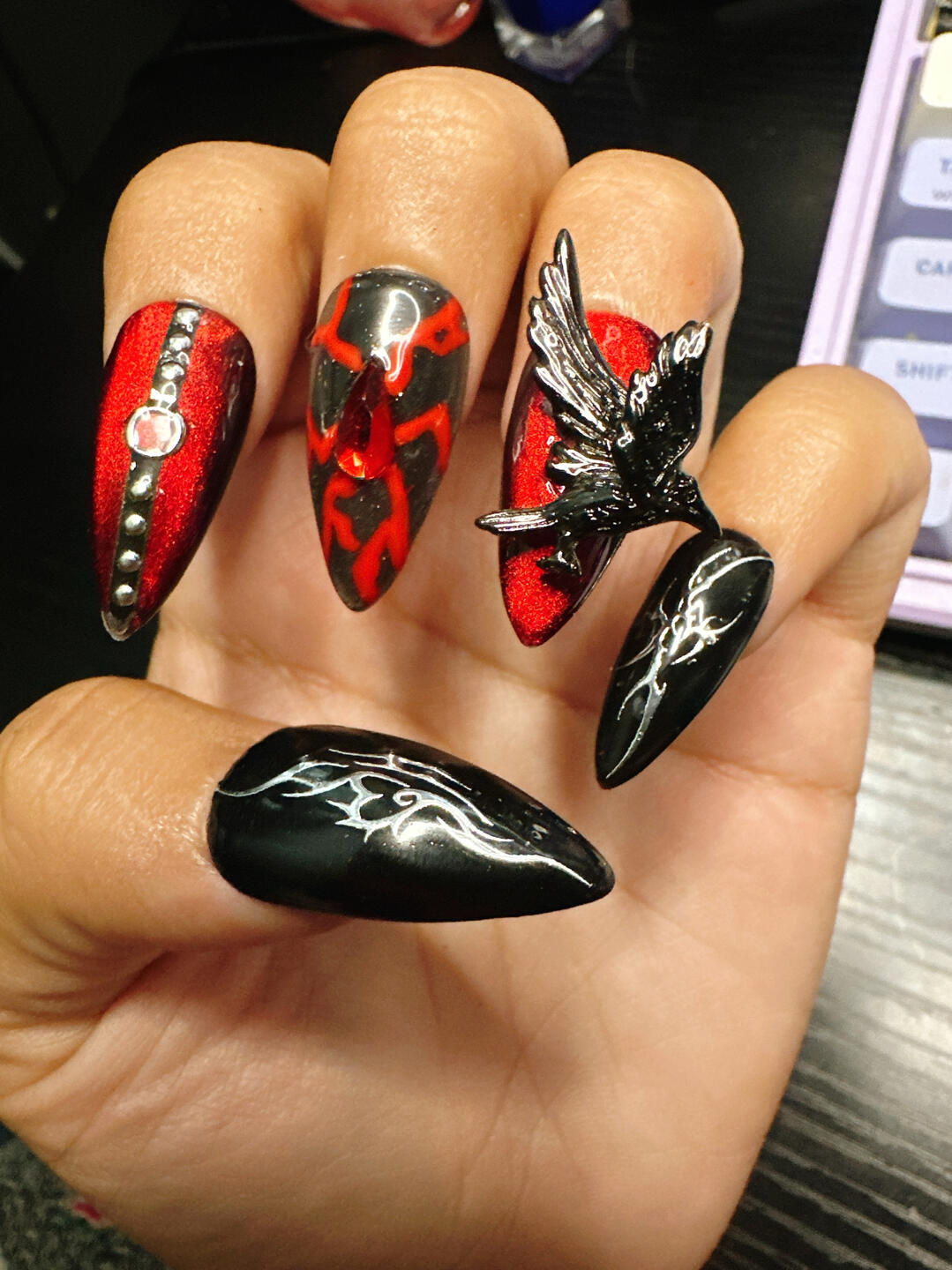 Hai! I'm Rai or RaiRai and I specialize in VTuber Inspired nail art! Here are some samples of my work. I can make any nail that you wish, be it personal nails or inspired nails of other fandoms. <3